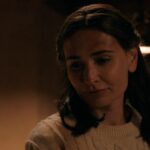 Exhausted, she falls asleep behind the wheel. The next morning, she makes a new plan. Lugging heavy pavers from the hardware store, she builds a proper stone shield over Helen’s grave, complete with a hand-painted headstone. Her grief — uncomfortable, heavy, raw — sits starkly in the episode, grounded and real, surrounded by all this speculative weirdness.