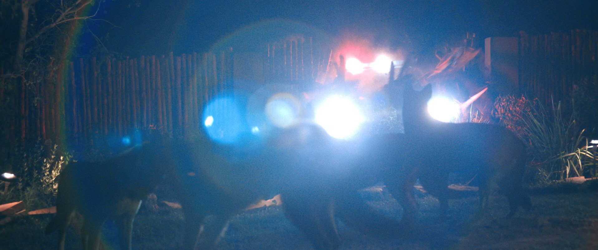 • Finally, straight out of a 1980s dark comedy, she commandeers a police cruiser (yes, a real one) and plows through her own fence, lights flashing, and chases the animals away (reelmockery.com).